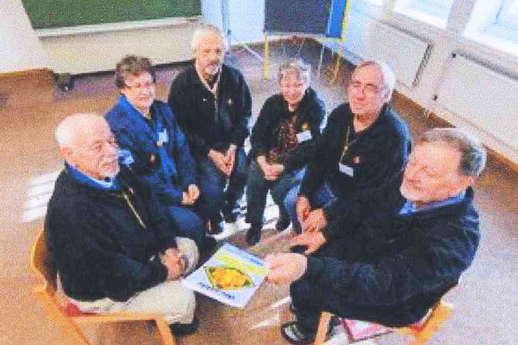 Schwelgen in Erinnerungen: Die erwachsenen Pfadfinder um Manfred Bosse (l.) und Charly Finke (r.). (Björn Hake)